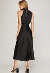 Black Satin Halter Neck Midi Dress for Women | Elegant Evening Dress – Kenchima