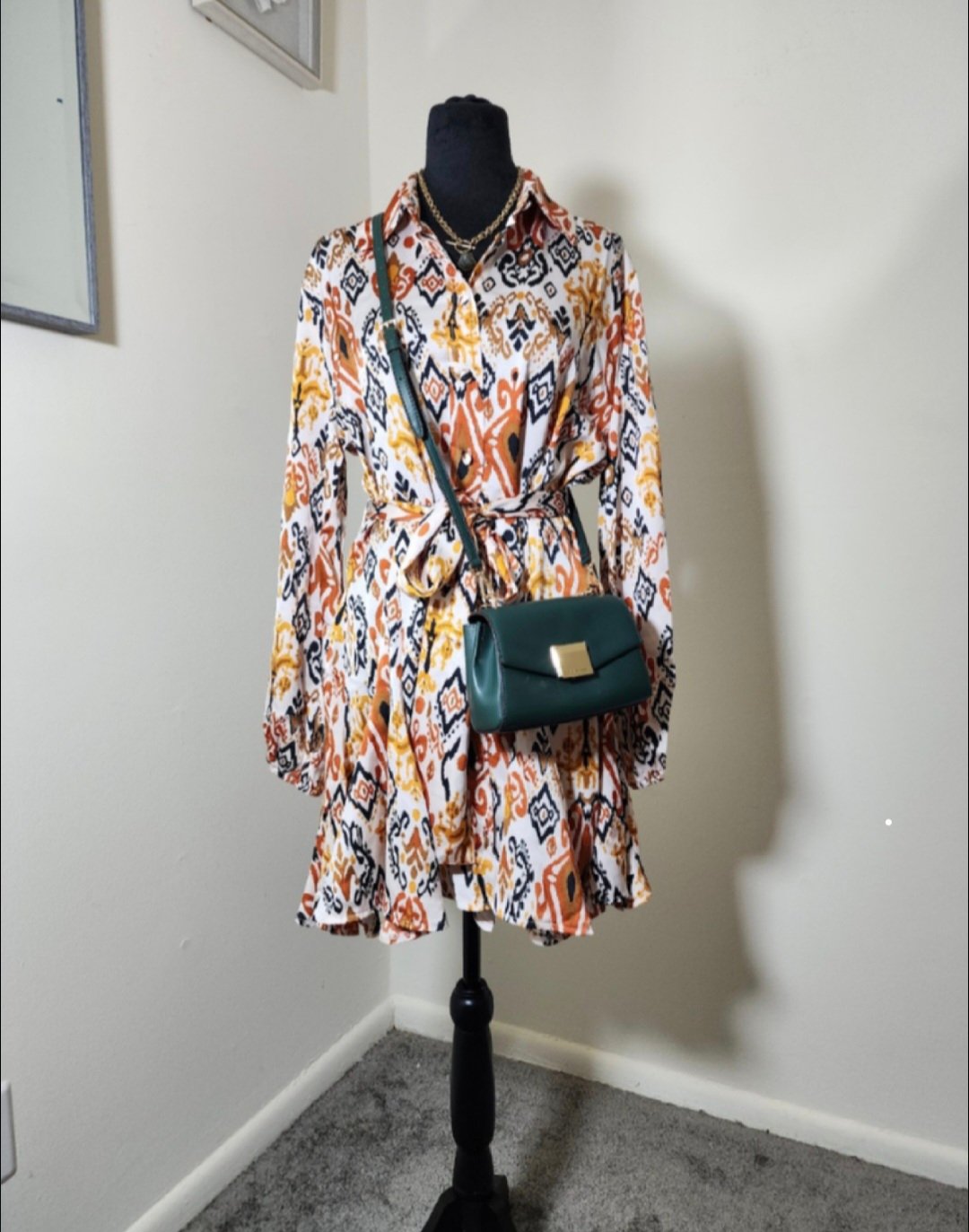 This beautiful dress is oversized fit.