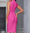 Turn heads with this pink deep V-neck bandage, elegant Bodycon Evening midu Dress from Kenchima, designed to sculpt and flatter your curves with a sleek bodycon fit. Featuring a sleeveless silhouette, structured bandage fabric, and a figure-enhancing midi length, this dress delivers elegance and confidence for any special occasion. Perfect for date nights, cocktail parties, weddings, or upscale events, this timeless pink bandage dress pairs beautifully with heels and statement accessories and is recommended for women seeking a chic, confident, and polished look.