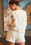 Perfect for casual outings, lounging at home, or seasonal celebrations, this sweatshirt pairs effortlessly with jeans, leggings, or matching shorts. The breathable material makes it ideal for all-day wear, while the unique sequin detailing elevates your look,