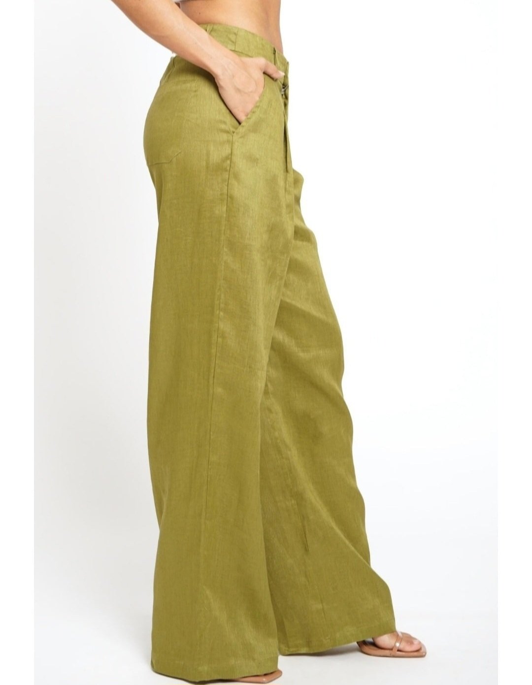 Olive Green Linen Wide Leg Women Pants