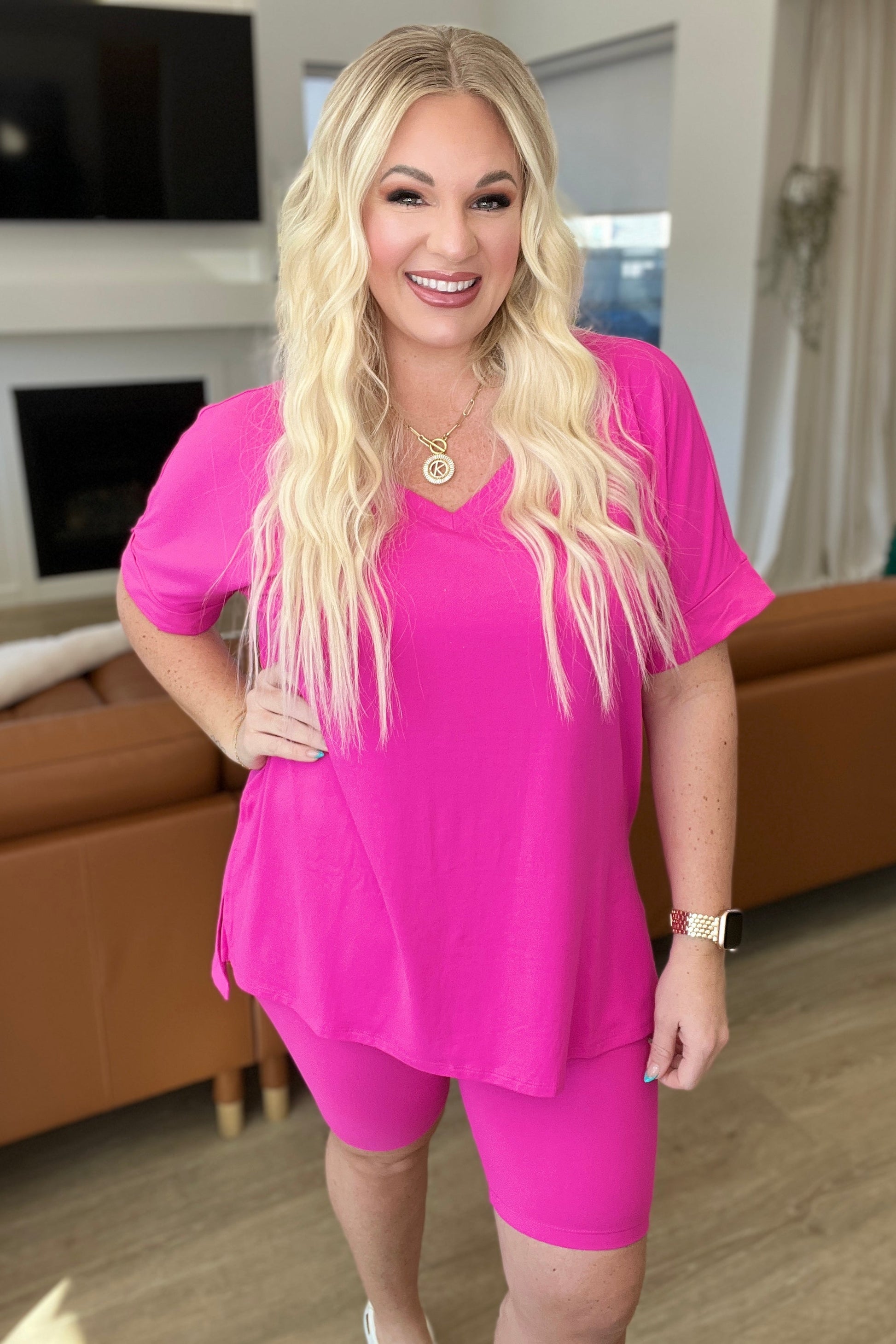 Buttery Soft V-Neck Bike Short Set in Neon Hot Pink