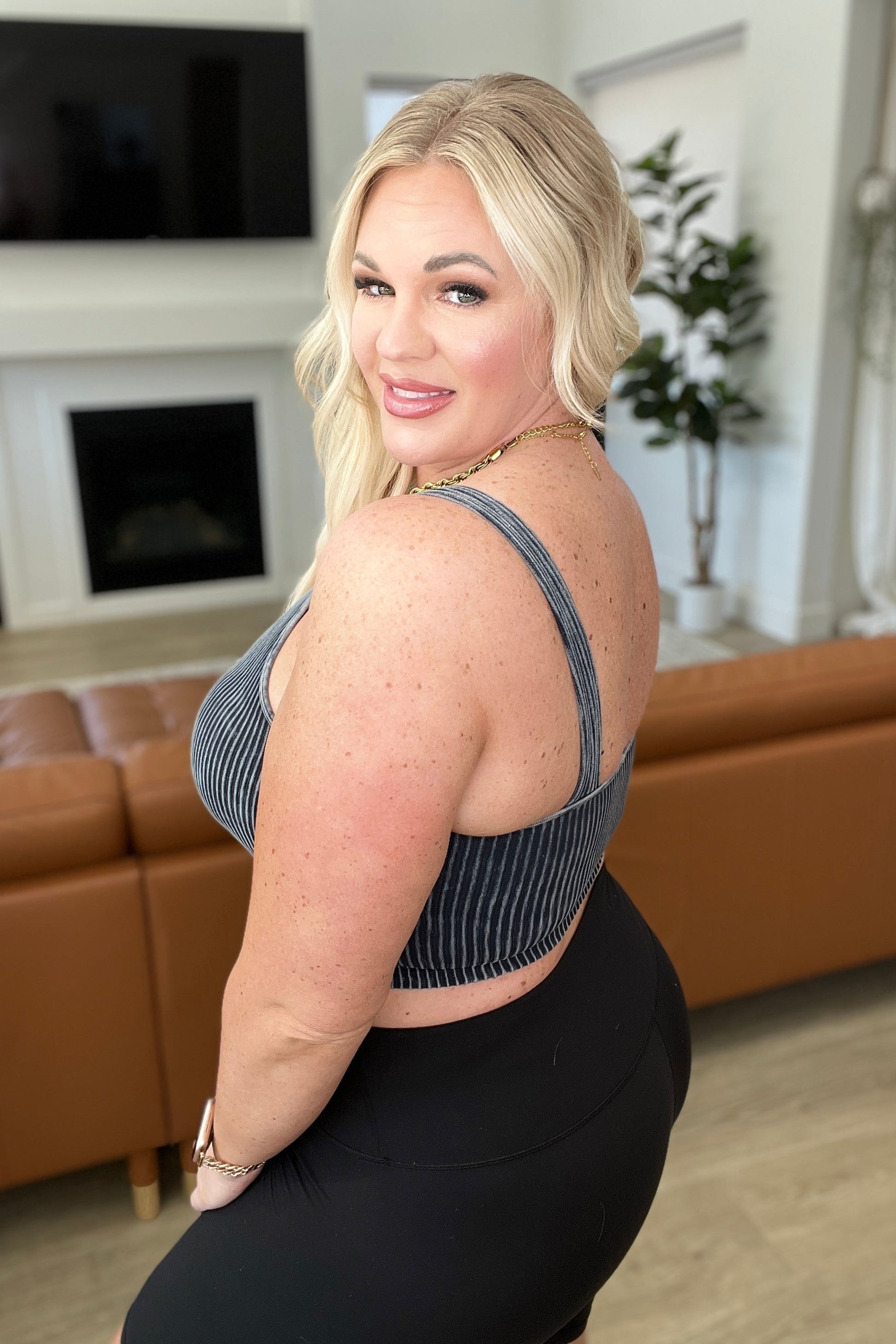 Mineral Washed Padded Cropped Tank in Ash Black