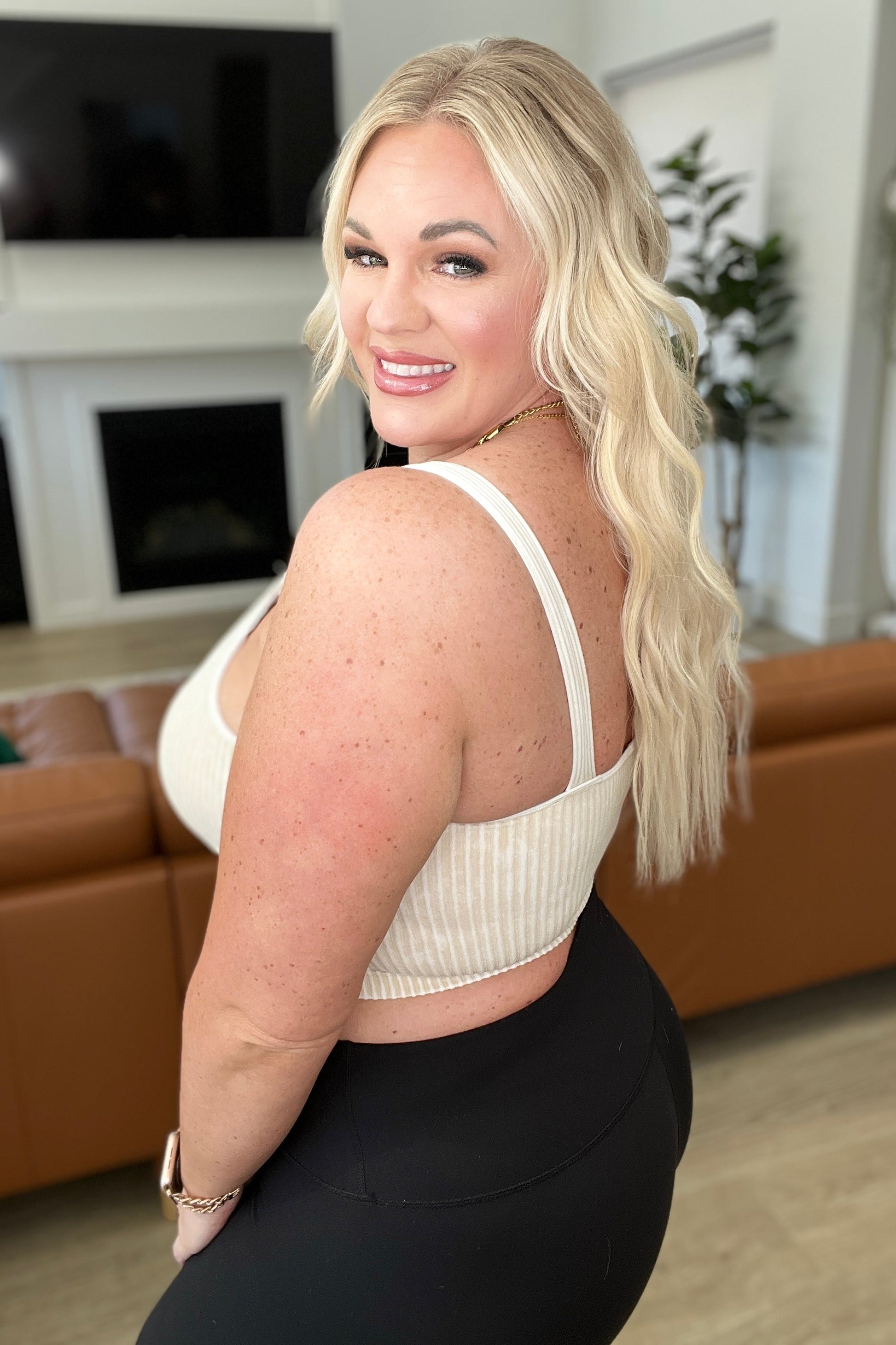 Mineral Washed Padded Cropped Tank in Sand Beige