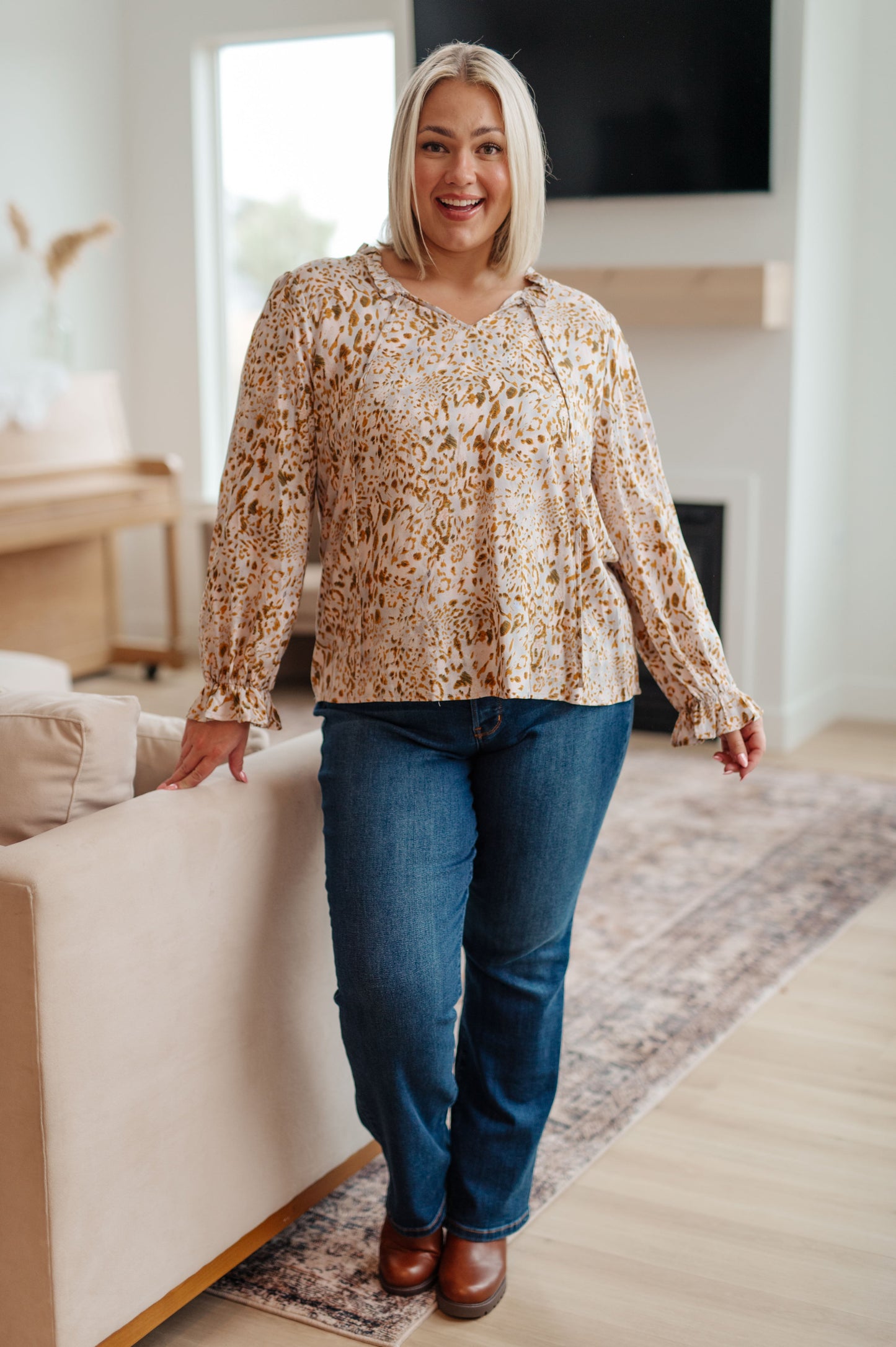 This Office Safari Keyhole Tie Detail Blouse offers a wild style with a hint of sophistication. Enjoy a unique, animal print pattern and a flirty ruffled keyhole tie neckline and ruffled sleeve cuff. Add a touch of adventure to your wardrobe with this fun and fashionable blouse.